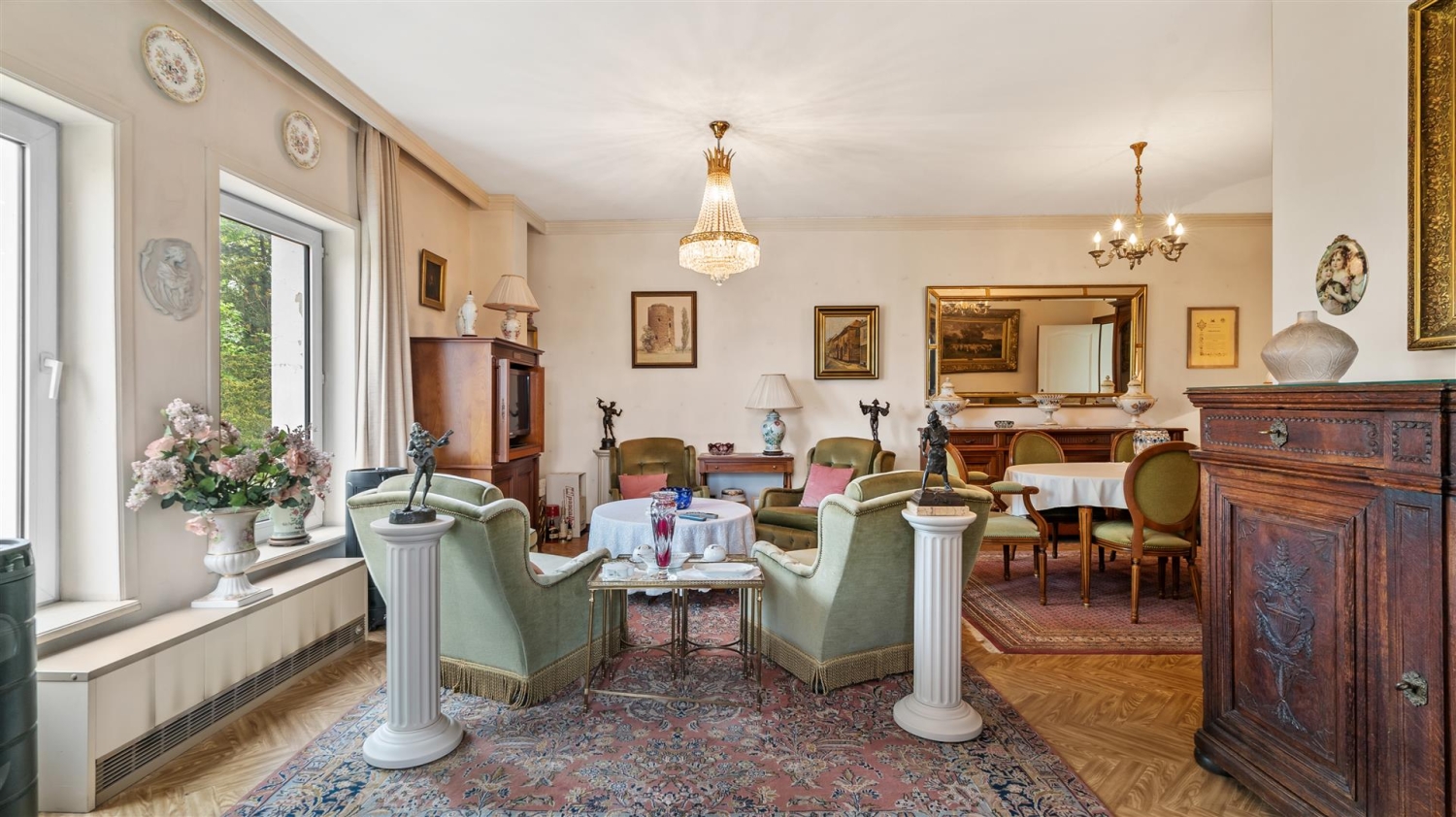 Kasteelgebouw: 7 kamers, 5 badkamers, 5 keukens, 4 leefruimtes, 4 eetkamers, toonzaal (ca 168m²) 10 toiletten, gietijzeren trap + houten trap, 2 liften met onderhoudscontract. Hoge plafonds.